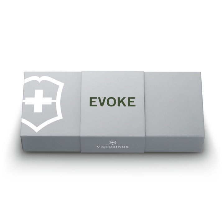 Victorinox Evoke BSH Alox Olive Green je preklopni nož aloksiranih drški u maslinasto zelenoj boji. Oštrica je u crnoj boji, u clip point varijanti. Na oštrici se nalazi thumbstud (pomoć pri otvaranju noža jednom rukom) koji se može odvinuti i maknuti. Također clip za nošenje u džepu se može maknuti. Nova Evoke serija dobitnik je prestižne RedDot nagrade koja se dodjeljuje za dizajn.