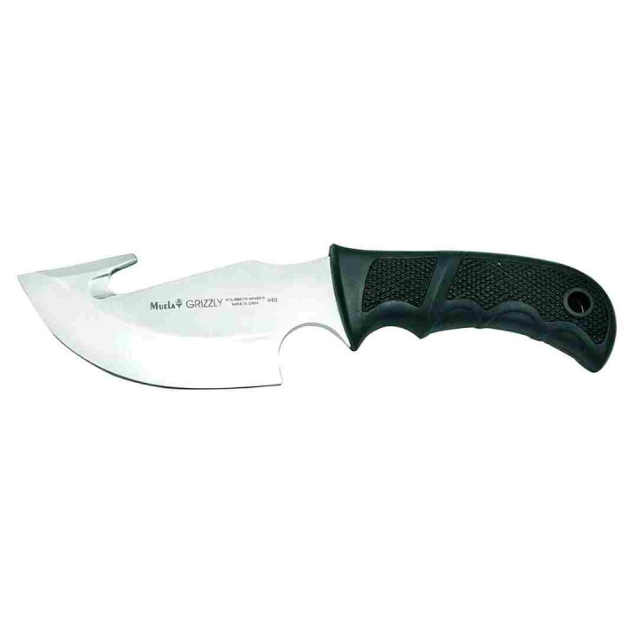Muela lovački nož sa kukom za deranje sa gornje strane oštrice. Dolazi sa crnom kožnom futrolom. Oštrica je dužine 12cm