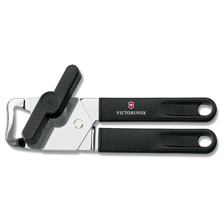 Univerzalni otvarač za konzerve od Victorinox-a. Drške su u crnoj boji.