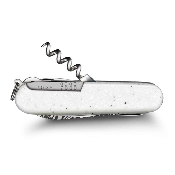 Nožić je napravljen u svega 7000 komada, te je svaki od njih numeriran. Korice su napravljene u sofisticiranim mat bijelim ljuskicama Corian®-a otpornima na ogrebotine.