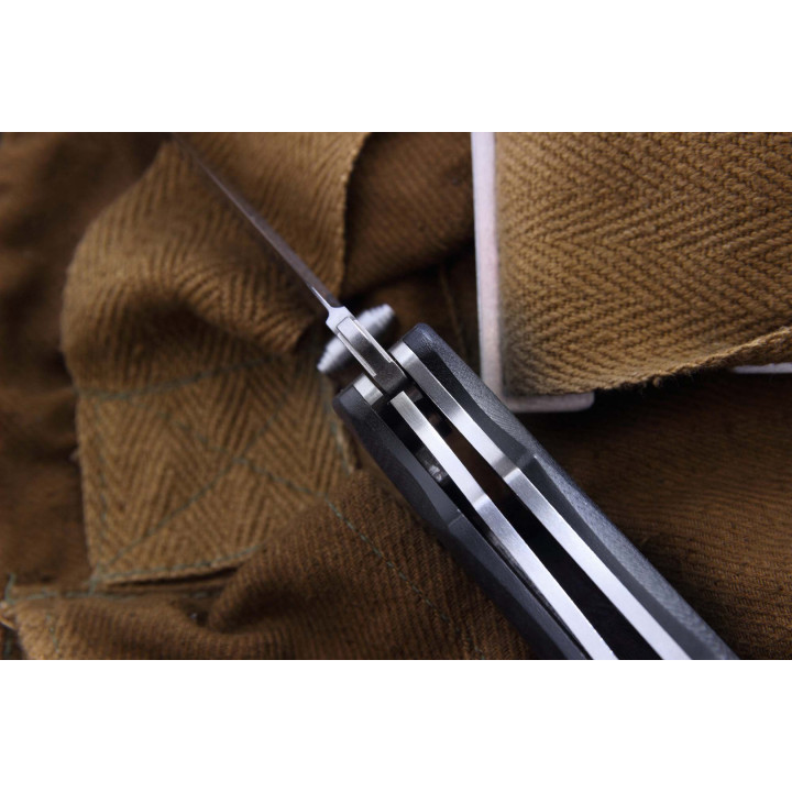 Oštrica mu je debljine 3.5mm. Nož je težak 240 g zbog svojih linera koji se nalaze između G10 drški, te dodatno ojačavaju konstrukciju noža.