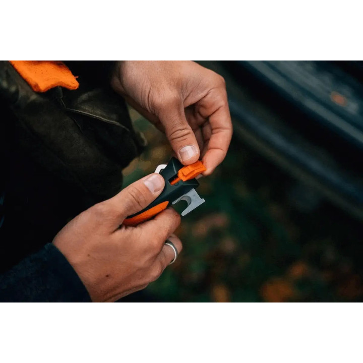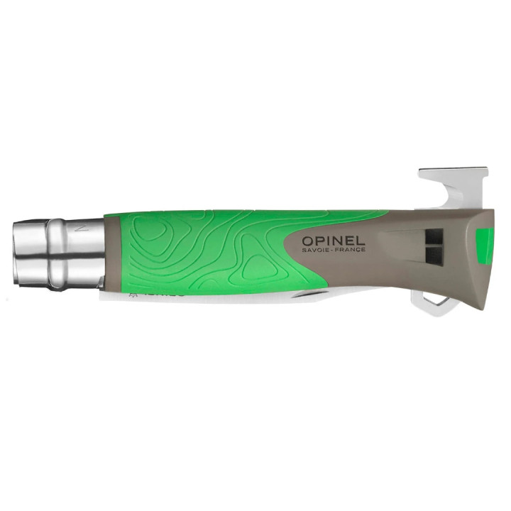 Nova verzija N°12 Explore Opinel noža je zapravo identična staroj verziji, ali su u dršku umjesto kresiva dodali alat za vađenje krpelja.