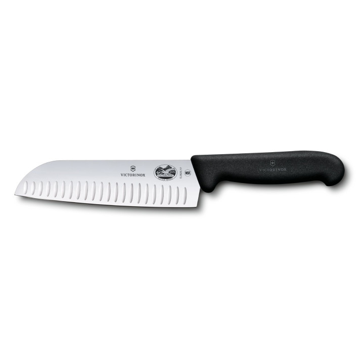 Santoku nož dužine 17cm sa udubljenjima na oštrici protiv prianjanja hrane i drškom od Fibrox-a.